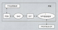 FIX運用I/O驅(qū)動程序從設(shè)備中讀寫數(shù)據(jù),每個I/O驅(qū)動程序支持其特定硬件。對于本系統(tǒng)的PROFIBUS網(wǎng)絡(luò),采用MPI驅(qū)動程序獲取其上數(shù)據(jù)。FIX組態(tài)軟件首先通過MPI驅(qū)動程序軟件接口從現(xiàn)場的過程硬件中獲取數(shù)據(jù),存入DIT驅(qū)動程序映象表中(驅(qū)動程序映象表在系統(tǒng)運行時實際上是一塊內(nèi)存區(qū)),F(xiàn)IX的內(nèi)部數(shù)據(jù)庫(PDB)通過SAC程序從DIT表中獲取它所需的數(shù)據(jù),應(yīng)用軟件(如FIX的畫面運行程序、報表生成程序等)都通過內(nèi)部數(shù)據(jù)庫訪問軟件從FiX內(nèi)部數(shù)據(jù)庫中獲取來自過程硬件的信息,這樣就可以實現(xiàn)工業(yè)流程畫面上動態(tài)地顯示現(xiàn)場各過程硬件的運行狀態(tài),數(shù)據(jù)也可以按相應(yīng)的順序?qū)懟噩F(xiàn)場過程硬件,執(zhí)行控制操作。相應(yīng)的數(shù)據(jù)采集流程如圖4所示。