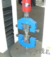 圖3:將事先留有孔的兩塊鋁展材合起來、通過插入成型與樹脂結(jié)合,然后通過牽引合成板兩端進行抗拉力試驗??沙惺?00kg/cm2的拉力。 |