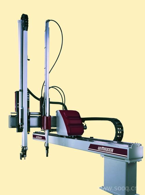 WITTMANN在2004年推出全新機械手W710系列。這款機型將秉承W720 款機械手特別在于簡單取件和二次操作上的成功設(shè)計。W710 型機械手Y軸和X軸最大可分別提供1200mm和2000mm。相比較原先的W720 系列機械手W710 機械手推出更具吸引的價格并提供所有的選項和擴充可能。W710 機械手可供最大5公斤(合11磅)的負荷,配有一個標(biāo)準(zhǔn)固定的轉(zhuǎn)動軸。像所有WITTMANN適合小型噸位的機械手,此類機械手使得機臂碰撞混料設(shè)備,或?qū)τ诙?,小機臺配合安裝較高上料設(shè)備的碰撞機會降之最低。(WITTMANN will display at K 2004 for the first time the completely newly developed electric-pneumatic linear robot Model W710. This unit will follow the successful model W720 robot that was specifically designed for simpler part removal and secondary operations. The robot models W710 are available with vertical strokes up to 1200mm and horizontal strokes up to 2000mm. Compared to the preceding model W720 robot, the W710 offers a very attractive price and at the same time provides all options and expansion possibilities. The W710 robot offers a payload of 5 kg (11 lbs) and is equipped with a fixed removal axis. Like all WITTMANN robots for the small tonnage range of presses, this minimizes the chance of possible collisions with blenders and tall material loaders on molding machines with small tonnage and shorter injection units. )