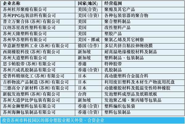 據(jù)不完全統(tǒng)計(jì),已經(jīng)投資蘇州市各科技園區(qū)的塑料加工/原料供應(yīng)/設(shè)備制造企業(yè)已經(jīng)有100多家。并形成了蘇州、昆山、張家港、常州等有特色的塑膠工業(yè)地帶。
