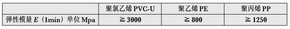 應(yīng)用于埋地排水管的熱塑性塑料有聚氯乙烯、聚乙烯和聚丙烯三大種類。三種材料的彈性模量E(根據(jù)prEN13476-1)分別為: