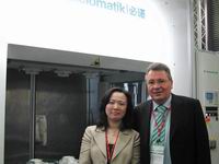 必諾機(jī)械(東莞)有限公司總經(jīng)理呂惠卿(左)和必諾勞舍有限責(zé)任公司銷售總監(jiān)羅爾夫。 |