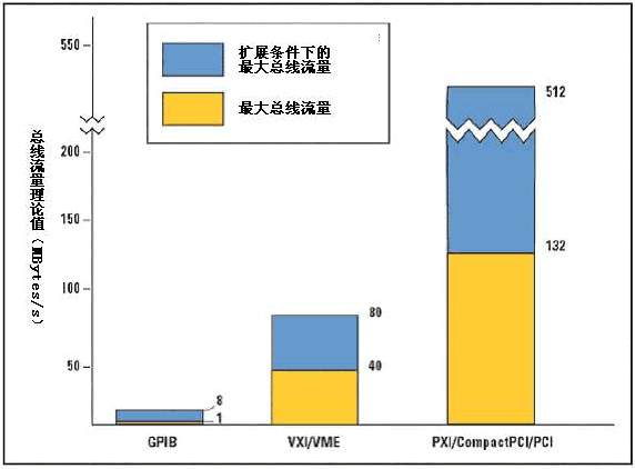 一個決定系統(tǒng)流量的關(guān)鍵因素是測量設(shè)備與計算機(jī)之間的接口總線。盡管系統(tǒng)性能由于處理器速度與系統(tǒng)內(nèi)存的增加而大幅提升,卻依然受到與儀器與外部設(shè)備的通信因素限制。GPIB是最常見的儀器接口總線,但其數(shù)據(jù)傳輸速率比VXI和PCI慢得多?;赩XI的測量系統(tǒng)具有高于GPIB的性能,但用戶必須為之付出高昂的代價。相比之下,PCI是為新型處理器設(shè)計的,數(shù)據(jù)傳輸速率比GPIB和VXI高得多。