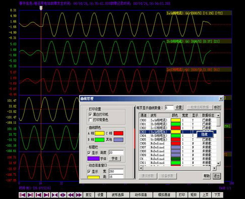 本系統(tǒng)提供了支持Comtrade格式的故障錄波數(shù)據(jù)分析工具,最大可支持100個(gè)錄波通道,能自動(dòng)識(shí)別通道相序并自動(dòng)配色。