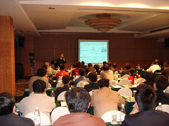 雖然受著天氣的影響,但依舊沒(méi)有阻擋與會(huì)者的參與熱情,3場(chǎng)會(huì)議共吸引了近300位來(lái)自各行業(yè)的專(zhuān)業(yè)人事。大家齊集一堂,共同分享Moxa的豐碩成果。會(huì)上Moxa中國(guó)區(qū)總經(jīng)理李筱云提出了One Moxa One Solution未來(lái)在全球范圍內(nèi)環(huán)保、智能化和網(wǎng)絡(luò)化將成為行業(yè)的發(fā)展趨勢(shì),想在激烈的競(jìng)爭(zhēng)中勝出,就要為客戶提供一體化的服務(wù),Moxa與組態(tài)軟件商的強(qiáng)強(qiáng)合作,就是要為客戶提供更完整的解決方案。來(lái)自Moxa的ECC產(chǎn)品銷(xiāo)售工程師戴曉靜小姐和DAC產(chǎn)品銷(xiāo)售工程師黃東波先生也分別為大家介紹了Moxa嵌入式工業(yè)計(jì)算機(jī)和遠(yuǎn)程I/O模塊在行業(yè)中的實(shí)際應(yīng)用。