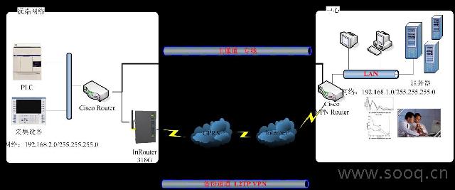 備用信道采用GPRS/CDMA網(wǎng)絡(luò)實現(xiàn)點對多點的無線通訊方式,