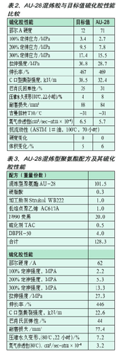 表2、AU-28混煉膠與目 標(biāo)值硫化膠性能比較 |