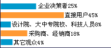 2006年第八屆大連國際自動化、儀器儀表展覽會影響已覆蓋全國,展會規(guī)模12000平米,有407個展位。本屆展會的觀眾主要來自東北、華北、華東、華中、西北、臺灣、香港及日本、韓國、俄羅斯等國家和地區(qū),主要為相關行業(yè)單位的決策人士、技術人員及采購負責人。2007(第九屆)大連國際自動化、儀器儀表展覽會將更切合您的需要,直接面向專業(yè)買家、進出口商、分銷商和直接用戶,為您締造更多的商機。本屆展會共計參觀商約27,273人次,其中各占比例如下: