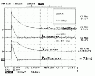 汽車瞬變中最嚴(yán)格和最苛刻的要求是負(fù)荷突降。因此如果器件能夠滿足這個(gè)要求,它一定可以承受其他不太苛刻的瞬變,如240V(10Ω源阻抗),350μs長度的瞬變。