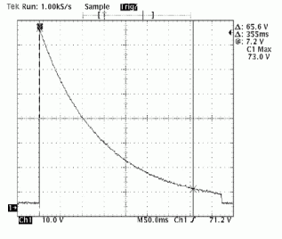 圖10顯示的示波圖為在負(fù)荷突降瞬變時(shí)在NUD3124器件上產(chǎn)生的波形。對(duì)于這種情況,器件控制一個(gè)線圈特性為L=48mH和Rdc=100Ω的OMRON繼電器(G8TB-1A-64)。流過驅(qū)動(dòng)器的電流很小(大約為170mA),因?yàn)樗焕^電器線圈的電阻(100Ω)所限制。導(dǎo)致的能量大約為73mJ,這依然在NUD3124器件的雪崩能量容量(350mJ)以內(nèi)。在某些情況中,負(fù)荷突降瞬變甚至高達(dá)80V,但是NUD3124器件的可靠性也可以處理那些類型的負(fù)荷突降狀況。