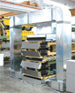 連續(xù)式生產(chǎn)線將為空調系統(tǒng)制造夾芯絕緣板。層壓機被設計有層壓板加工時的最精密公差,目的是實現(xiàn)厚度各異的板條(10-50 mm),并確保最佳的平行度和厚度公差。基本上,所允許的最大生產(chǎn)速度是10米/分鐘,但它與所用厚度有著非常大的關聯(lián),事實上酚醛樹脂的常見特色是極長的固化時間。而板條寬度將是1200毫米。