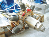 一旦完成了發(fā)泡,鋁膜面和酚醛夾芯就進入到所謂“雙帶傳送機”(21米長)中,實現(xiàn)有關的聚合階段。如前所述,Cannon公司已經(jīng)為雙帶傳送機開發(fā)和裝備了專用的驅動專利系統(tǒng)。事實上,驅動系統(tǒng)是以所謂“無端螺桿驅動系統(tǒng)”為基礎,而不是傳統(tǒng)的齒輪,這確保傳送帶的運轉穩(wěn)定很多,特別是在低速下。