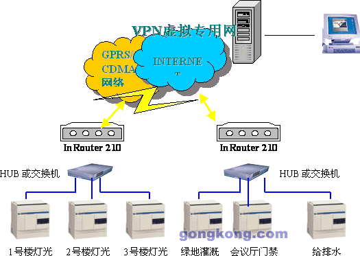 缺點:相對于方案2速度較慢,而且需要附加CDMA或者GPRS的通信費用,另外需要購買INROOTER路由器。