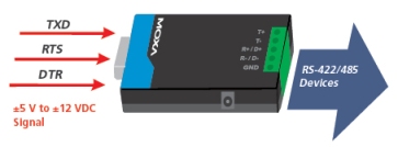 TCC-80轉(zhuǎn)換器通過從RS-232端口取電來實(shí)現(xiàn)RS-232到 RS-422/485轉(zhuǎn)換。它將RS-232的TxD和RxD信號轉(zhuǎn)換為半 雙工的2線RS-485或全雙工的4線RS-422/485差分信號。 同時,TCC-80內(nèi)建有15KV ESD浪涌保護(hù)功能,可防止輸出信號的電流突波。除此之外,TCC-80還提供了通過檢 測RS-232輸出信號TxD狀態(tài)來實(shí)現(xiàn)RS-485自動數(shù)據(jù)流向 控制的功能。因此,客戶不必親自控制RS-485數(shù)據(jù)的流向。