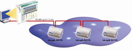ioLogik R2000 系列中的 RS-485 I/O 服務(wù)器除了傳統(tǒng)應(yīng)用外也能用于 I/O 服務(wù)器的擴(kuò)展。 在傳統(tǒng)應(yīng)用中,一臺電腦可以通過兩線 RS-485 連接 32 個 RS-485 I/O 服務(wù)器,最大傳輸距離 1.2 公里。 ioLogik R2000 I/O 系列兼容 MXIO 函數(shù)庫,這樣可簡化系統(tǒng)集成商開發(fā) IO 監(jiān)控程序的過程。此外, ioLogik R2000 系列服務(wù)器也支持標(biāo)準(zhǔn)的 Modbus/RTU 協(xié)議,保證了與其他 SCADA 軟件的兼容性。