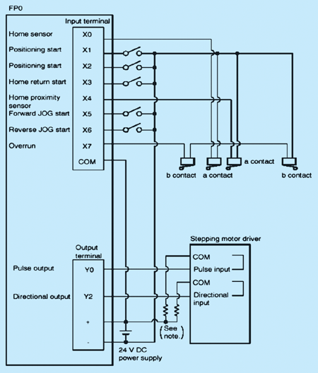 FP0系列PLC除具有一般邏輯控制與運(yùn)算功能外,還具有高速計(jì)數(shù)輸入(最大10kHz)、PLS脈沖直接輸出、SPD位置控制、PWM脈沖輸出等特殊處理功能,用于步進(jìn)電機(jī)的速度控制或位置按制十分方便。