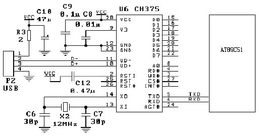 CH375在單片機(jī)讀寫U盤中的電路原理圖