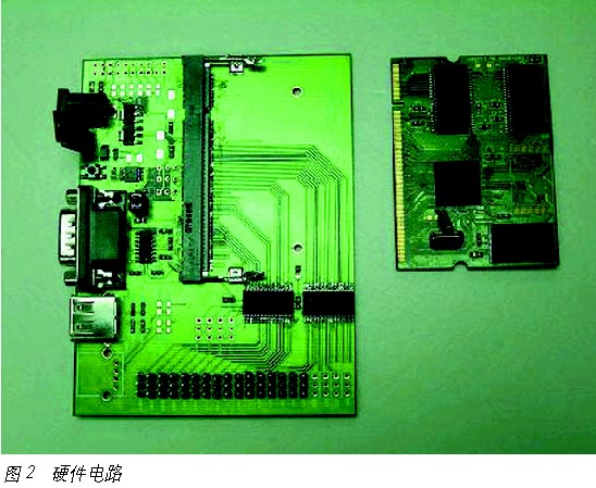 見圖2,一塊核心母板,配備CPU、16MB的NOR Flash、64MB的NAND Flash、32MB的SDRAM,并設置系統(tǒng)從NAND Flash啟動;一塊外設電路板,負責系統(tǒng)和