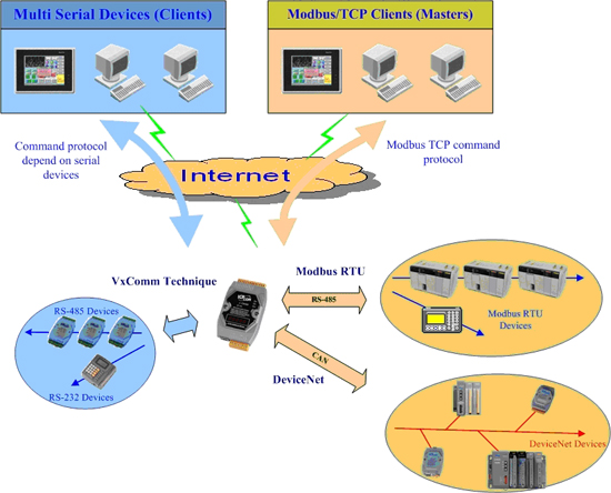 I-7243D是泓格公司在CAN BUS系列中的一項產(chǎn)品。不僅提供VxComm功能及Modbus協(xié)議中RTU/TCP的轉(zhuǎn)換功能,也解決了Modbus TCP及DeviceNet通訊協(xié)議間的轉(zhuǎn)換問題。使用I-7243D網(wǎng)關(guān),無論是PLC或PC Based的系統(tǒng)都可以透過Internet/Ethernet來監(jiān)控DeviceNet網(wǎng)絡(luò)上的設(shè)備。在DeviceNet網(wǎng)絡(luò)接口上,I-7243D扮演DeviceNet Master的角色,提供“Predefined Master Connection Set”的功能且支持“Group 2 only Server”的DeviceNet設(shè)備。在Ethernet網(wǎng)絡(luò)接口上,I-7243D扮演Modbus TCP Server的角色,使用者可以使用Modbus TCP class 0、class 1及部分的class 2功能來和I-7243D相互通訊。此外,我們也提供了Utility工具軟件,讓使用者可以建構(gòu)I-7243D的各項參數(shù)及功能,同時也可以更容易的擷取DeviceNet網(wǎng)絡(luò)設(shè)備的數(shù)據(jù)。
