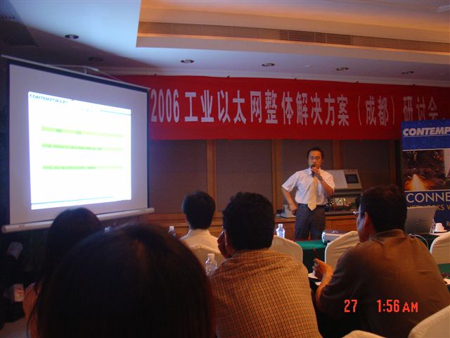 2006科動成都研討會 6月27日,美國科動公司在成都總府皇冠假日酒店成功舉辦了《2006年科動工業(yè)以太網(wǎng)研討會》,科動全線新款工業(yè)以太網(wǎng)產(chǎn)品伴隨著醉人的春風(fēng)撲面而來。 上半場的主題為科動工業(yè)以太網(wǎng)家族,首先由科動公司銷售經(jīng)理為大家介紹科動工業(yè)以太網(wǎng)交換機系列產(chǎn)品,飽含激情、專業(yè)細(xì)致的演講抓住了現(xiàn)場在座各位的心,會議由此逐步推向高潮。隨后科動銷售人員向大家詳盡闡述了科動工業(yè)以太網(wǎng)行業(yè)解決方案及案例,結(jié)合豐富生動的圖例、妙趣橫生的語言讓大家深刻領(lǐng)會了科動工業(yè)以太網(wǎng)產(chǎn)品在四大行業(yè)中的應(yīng)用。