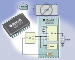 Maxim Integrated Products的全資子公司Dallas Semiconductor的實時時鐘(RTC)產(chǎn)品線新增了DS32B35 (2k x 8位)和DS32C35 (8k x 8位)兩款非易失FRAM存儲器,是業(yè)界精度最高的RTC。當(dāng)暴露于極端的溫度條件下,常用作RTC時基的音叉晶振將產(chǎn)生每年一小時的誤差。而DS32B35/DS32C35可以測量溫度并通過改變晶體的負(fù)載電容調(diào)整晶振頻率,可在0℃至+70℃的溫度范圍內(nèi)實現(xiàn)每年一分鐘以內(nèi)的時間保持誤差。 DS32B35/DS32C35所采用的FRAM具有真非易失,無需電源即可實現(xiàn)數(shù)據(jù)保存,同時沒有EEPROM或flash存儲器的寫次數(shù)或模塊擦寫次數(shù)限制??梢愿鶕?jù)實時時鐘備份的要求調(diào)整分立的電池或電容的容量,從而為設(shè)計人員提供了布板和元件采購的靈活性。 與電池備份SRAM模塊采用字節(jié)寬度接口不同,RTC和FRAM均通過I2C接口進(jìn)行訪問。對于那些通常采用電池備份SRAM模塊保存重要數(shù)據(jù),且要求無限次讀/寫的應(yīng)用,可采用DS32B35/DS32C35以I2C數(shù)據(jù)總線實現(xiàn)這一功能。這一變化大大減少了存儲器和CPU間的互連線數(shù),從而使PCB布板更加容易實現(xiàn)。 由于減少了引腳數(shù)目并且省去了內(nèi)部備份電池,使DS32B35/DS32C35可采用ROHS兼容、20引腳、300 mil的SO封裝,而無需采用常見的大過孔模塊。該系列RTC適用于用商業(yè)級(0℃至+70℃)或工業(yè)級(-40℃至+85℃)溫度范圍。DS32B35起價為$4.00,而DS32C35的起價則為$4.80 (1000片起,美國離岸價)。