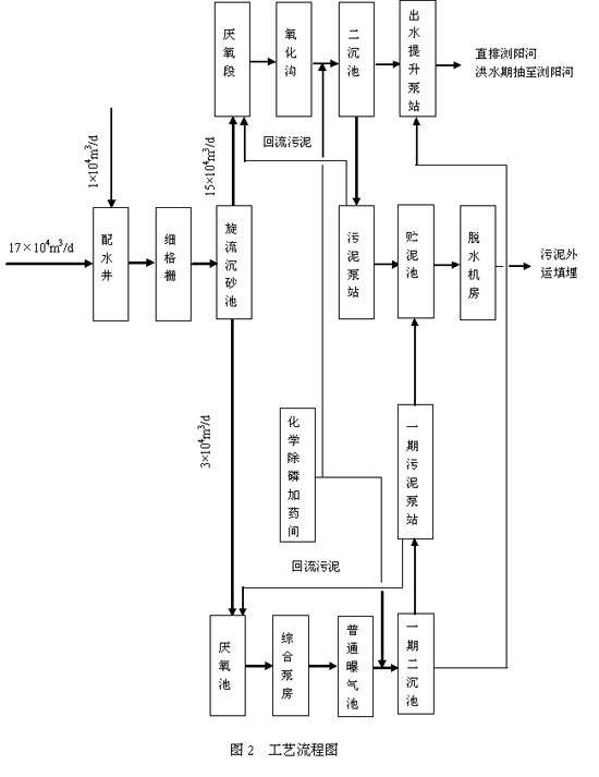 長(zhǎng)沙市第一污水處理廠一期擴(kuò)建工程工藝流程圖如圖2所示。