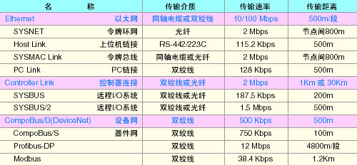 可將以上的網(wǎng)絡(luò)從高到低劃分為三個(gè)層次:信息層、控制層和設(shè)備層。第一層信息網(wǎng),包括工業(yè)以太網(wǎng)(Ethernet)和SYSNET,主要負(fù)責(zé)大量信息的采集和實(shí)時(shí)監(jiān)控,對(duì)現(xiàn)場(chǎng)的PLC、檢測(cè)元器件和執(zhí)行機(jī)構(gòu)實(shí)行中央集中控制,最新的工業(yè)以太網(wǎng)技術(shù)(CIP技術(shù))在商用以太網(wǎng)的基礎(chǔ)上增加了工業(yè)級(jí)的實(shí)時(shí)性,已成為最通用最高速的一種信息網(wǎng)絡(luò)。第二層為控制層,包括SYSMAC Link、PC Link和Controller Link,控制層網(wǎng)絡(luò)的特點(diǎn)是高速、高可靠,適合PLC與計(jì)算機(jī)、PLC與PLC及其它設(shè)備之間的大量數(shù)據(jù)的高速通訊。最底層網(wǎng)絡(luò)為設(shè)備層,它們有SYSBUS、SYSBUS/2、CompoBus/D(DeviceNet)、CompoBus/S、ProfiBus-DP、Modbus等,這一層用于PLC與現(xiàn)場(chǎng)設(shè)備、遠(yuǎn)程I/O端子及現(xiàn)場(chǎng)儀表或智能設(shè)備之間的通訊,設(shè)備層網(wǎng)絡(luò)應(yīng)是與現(xiàn)場(chǎng)設(shè)備連接方便,并能起到省配線的作用,成本低廉。第三層網(wǎng)絡(luò)習(xí)慣上稱之為現(xiàn)場(chǎng)總線。Ethernet、Controller Link和DeviceNet代表了歐姆龍以上三個(gè)層次網(wǎng)絡(luò)產(chǎn)品的最新技術(shù)。