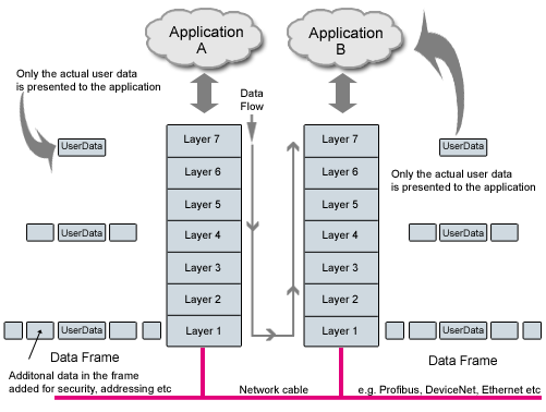 通訊的基本原理是使用 OSI 模型的不同層作為子集。第一層表示最底層,也就是物理通訊線路的電氣信號。第 7 層是用戶層,在這一層兩種設備才能交換和理解相互之間的數(shù)據(jù)。一個簡單的例子是我們不僅需要聽到其他人講話,還要理解對方的語言,這就相當于理解 “ 數(shù)據(jù) ” 的含義。使用相同的第 7 層協(xié)議的設備,就像說一種語言一樣能夠自由地交換和理解數(shù)據(jù)。