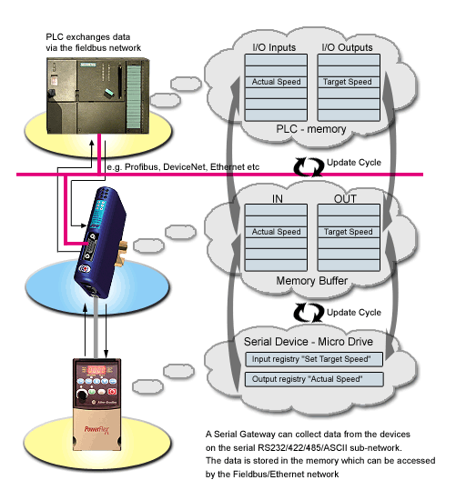 還有一種網(wǎng)橋能夠?qū)⒋薪涌跀?shù)據(jù)轉(zhuǎn)換至某些現(xiàn)場總線,例如Profibus。這聽上去與我們下面要討論的網(wǎng)關(guān)極為相似。但它的工作原理還是網(wǎng)橋,因為它不能夠?qū)?shù)據(jù)進行應用層的解析,而只是將串行報文整體作為Profibus的數(shù)據(jù)進行轉(zhuǎn)發(fā)。這類網(wǎng)橋產(chǎn)品的缺點是其自身不能處理串行報文的幀格式和收發(fā)機制(如:掃描周期、超時時間、重發(fā)次數(shù)等),而這些任務都需要現(xiàn)場總線的主站(如PLC)來完成。從而增加了總線的負擔,降低了實時性和可靠性。