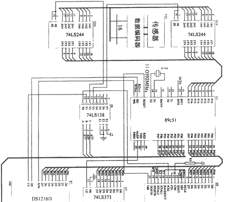 (2)SRAM的選擇與連接,靜態(tài)RAM保存加有時標的數(shù)據(jù),選擇DALLAS公司生產(chǎn)的DS1216D,內(nèi)帶有電池和實時日歷時鐘功能,內(nèi)含RAM為628128,容量為128K,該芯片掉電自動保存數(shù)據(jù)和時鐘運行。