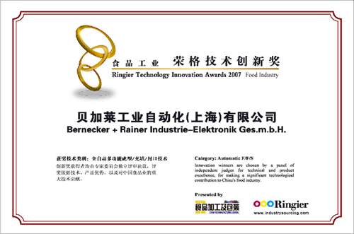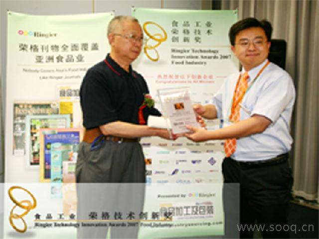 2007年7月10日,70多位食品業(yè)精英見(jiàn)證了榮格集團(tuán)舉辦的榮格首屆“食品工業(yè)榮格技術(shù)創(chuàng)新獎(jiǎng)”頒獎(jiǎng)典禮。此頒獎(jiǎng)典禮在上海新國(guó)際博覽中心隆重舉行。這一年度盛會(huì)由榮格旗下《國(guó)際食品加工及包裝商情》全力主辦。創(chuàng)新獎(jiǎng)獲得者均由專(zhuān)家委員會(huì)依據(jù)技術(shù)、產(chǎn)品優(yōu)勢(shì),以及對(duì)中國(guó)食品業(yè)的重大技術(shù)貢獻(xiàn)等獨(dú)立評(píng)審而定,其公正性可見(jiàn)一斑。