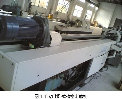 由中達(dá)電通公司開(kāi)發(fā)的臥式精密珩磨機(jī),具有較高的工作效率和工作性能,該系統(tǒng)不但精確珩磨工件內(nèi)圓,而且能夠精確檢測(cè)工件內(nèi)圓的“凸點(diǎn)”,加工效率也遠(yuǎn)遠(yuǎn)超過(guò)內(nèi)圓磨床?;谥羞_(dá)機(jī)電技術(shù)的自動(dòng)化臥式精密珩磨機(jī)如圖1所示。