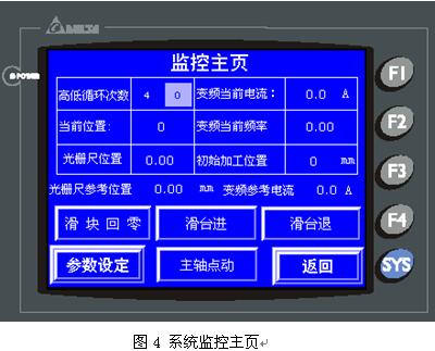 系統(tǒng)要求珩磨和“凸點(diǎn)”檢測(cè)同時(shí)進(jìn)行,珩磨的厚度主要由珩磨油石、油壓控制檢測(cè)的光柵和PLC共同實(shí)現(xiàn),由于臺(tái)達(dá)32EH00M伺服控制專(zhuān)用PLC系列能夠接收2信道差動(dòng)輸入,所以無(wú)需其它轉(zhuǎn)換電路,光柵尺信號(hào)可直接接入PLC,且同時(shí)將伺服驅(qū)動(dòng)的分頻輸出直接輸入PLC,以便實(shí)時(shí)檢測(cè)機(jī)臺(tái)的絕對(duì)位置。在實(shí)際的珩磨過(guò)程中,因工件內(nèi)圓的“凸點(diǎn)”存在,由此形成珩磨變頻馬達(dá)電流瞬間的一個(gè)峰值,利用系統(tǒng)核心PLC記憶該電流峰值形成時(shí)的位置,然后控制伺服小車(chē)在此“凸點(diǎn)”珩磨擺動(dòng)的次數(shù),達(dá)到預(yù)期的珩磨精度,同時(shí)也可以根據(jù)光柵尺內(nèi)圓半徑的檢測(cè),自動(dòng)研磨至設(shè)定的厚度。所以該系統(tǒng)采用變頻負(fù)載/電流線性對(duì)應(yīng)關(guān)系,完成了對(duì)加工工件內(nèi)圓的“凸點(diǎn)”檢測(cè)。臺(tái)達(dá)V系列變頻為全矢量高性能的驅(qū)動(dòng),能夠快速精確反應(yīng)出負(fù)載電流的變化,而臺(tái)達(dá)PLC采用通訊方式快速采樣變頻器電流為該系統(tǒng)的關(guān)鍵所在。