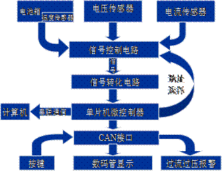 電池管理系統(tǒng)一直是電動(dòng)汽車(chē)發(fā)展中的一項(xiàng)關(guān)鍵技術(shù),它最基本的作用是監(jiān)視電池的工作狀態(tài),通過(guò)對(duì)電池電壓、電流和溫度這些參數(shù)的測(cè)量,預(yù)測(cè)電池的SOC和相應(yīng)的剩余行駛里程,管理電池的工作狀況。電池管理系統(tǒng)框圖如圖(2)所示: