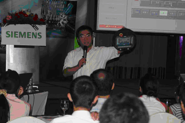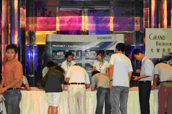 從德國空運來的最新的模擬工廠模型也跟隨我們的團隊來到大連。講師們結合理論知識,為客戶們現(xiàn)場演示了由PROFINET支持的一套光電鼠標的生產(chǎn)過程。從原料入口、分離、組裝到質量監(jiān)控,現(xiàn)場演示的模型使復雜的生產(chǎn)過程一目了然。很多與會者紛紛表示,都對這套設備產(chǎn)生了濃厚的興趣。為了能讓客戶對PROFINET有更全面的認識,組織者還為每一位客戶準備了講師的全部講義和PROFINET手冊。除PROFINET外,組織者還對西門子自動化系統(tǒng)最新版本的PLC、HMI等產(chǎn)品進行了推廣,都受到了客戶的熱烈響應。會議中,很多客戶對自己關注的部分進行了提問,講師們也耐心解答。組織者還為來賓們準備了豐富精美的禮品。最后,客戶們紛紛認真地填寫了反饋信息表。很多客戶反映,對這次活動非常滿意,在培訓中受益匪淺。