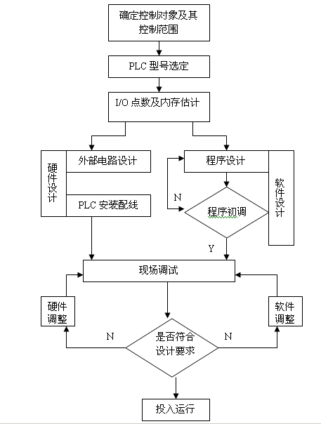 PLC的工作方式和通用微機(jī)不完全一樣,因此用PLC設(shè)計(jì)自動(dòng)控制系統(tǒng)與微機(jī)的控制系統(tǒng)的開(kāi)發(fā)過(guò)程也不完全一樣。需要根據(jù)PLC的特點(diǎn),以程序形式來(lái)體現(xiàn)其控制功能。設(shè)計(jì)可按照下圖中幾個(gè)步驟進(jìn)行。