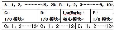 VCN-MIO智能節(jié)點(diǎn)模板,以包含Neuron芯片在內(nèi)的TP/FT-10F閃控模塊和AT89C2051單片機(jī)為核心,采用標(biāo)準(zhǔn)的控制網(wǎng)絡(luò)協(xié)議LonTalk,實(shí)現(xiàn)了真正的對(duì)等層點(diǎn)到點(diǎn)通信的分布式控制網(wǎng)絡(luò)。其總體設(shè)計(jì)如圖1所示。圖中,A為8路AI、6路DO;B為網(wǎng)絡(luò)、直流電壓與交流源接口;C、D、E分別為擴(kuò)充模塊的I/O端口,其功能由擴(kuò)充I/O模塊定義,可以根據(jù)工程實(shí)際需求靈活配置。