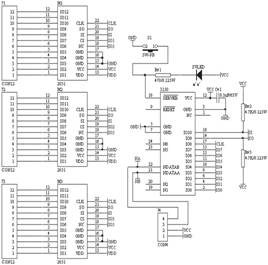 底板的結(jié)構(gòu)設(shè)計(jì)用來(lái)排列核心模塊和擴(kuò)展模塊,并給各個(gè)擴(kuò)展模塊提供電源,同時(shí)底板又是一個(gè)8路AI/6路DO的基礎(chǔ)板。核心模塊和擴(kuò)展模塊、核心模塊與底座的通信即神經(jīng)元芯片與單片機(jī)AT89C2051芯片通信采用的是SPI方式,如圖4所示,由于神經(jīng)元芯片的IO口不多,故選用串行方式。SPI接口是一種同步全雙工串行外圍接口,突出優(yōu)點(diǎn)是在使用最少的微控制器引腳的前提下,實(shí)現(xiàn)相對(duì)高速的短程通信。神經(jīng)元芯片提供Neurowire對(duì)象實(shí)現(xiàn)SPI方式通信,IO8、IO9、IO10分別是同步時(shí)鐘、數(shù)據(jù)輸出、輸入;IO0-IO7任意一個(gè)可