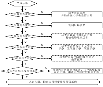 在節(jié)點(diǎn)開(kāi)發(fā)過(guò)程中,故障的出現(xiàn)是不可避免的。在出現(xiàn)故障后能迅速的診斷故障所在,并且及時(shí)地進(jìn)行修正,是每個(gè)開(kāi)發(fā)人員面臨的共同任務(wù)。而在故障的診斷中,具有一個(gè)好的策略流程,能有效的指導(dǎo)開(kāi)發(fā)人員有順序的有邏輯的進(jìn)行故障定位。圖8便是一個(gè)基本完整的策略流程圖。