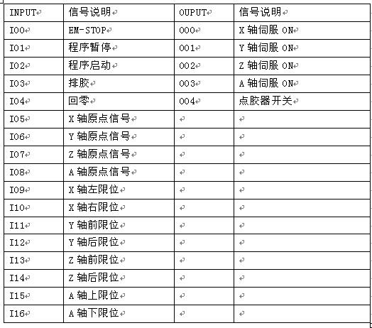 數(shù)控系統(tǒng)控制的點膠機設(shè)備共有四個軸,使用四臺伺服控制器和伺服電機,X軸一臺、Y軸兩臺、Z軸一臺;輸入信號有急停按鈕、手動自動轉(zhuǎn)換按鈕、手動點膠按鈕、暫停按鈕、回零按鈕、左右限位輸入信號及伺服報警信號等共計21個輸入信號;控制流程是使用數(shù)控系統(tǒng)控制四個伺服控制器及伺服電機、四個點膠器的開關(guān)信號,自動運行時Y軸控制的兩個平臺交替工作,X軸和兩個Y軸需要走直線插補或圓弧插補,Z軸需要走不同高度的點膠面,更換產(chǎn)品比較頻繁,更換產(chǎn)品后需手動調(diào)整開膠點,然后在進行單步動作或自動運行;功能與特點:1.所有軸上均采用了滾珠絲杠和伺服電機,可以確保用戶能夠流暢、精準、正確地點膠;2.點膠準確、均勻;3.注膠量、點膠速度可任意調(diào)節(jié);中文菜單顯示;5.輕觸式按鍵操作;6.控制簡單、方便、直觀。