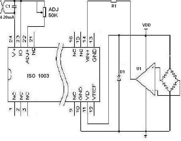 產(chǎn)品說明:兩線制4-20mA信號隔離變送器(ISO 1003)是單片兩線制隔離接口芯片,該芯片內(nèi)部包含有一個電流信號調(diào)制電路,光電耦合隔離變換電路及解調(diào)電路。 該芯片有4-20mA的供電電壓范圍寬(16.5V-36V),輸入等效電阻小,線性度高等特點。該芯片可提供5V/3.5mA的隔離電壓輸出、2.5V基準(zhǔn)電源。輸入信號的電壓為0-0.8V,相對應(yīng)輸入側(cè)信號路中電流的變化。輸入及輸出側(cè)寬爬電距離及內(nèi)部特殊絕緣的隔離措施使該芯片可達到3KVDC絕緣電壓。產(chǎn)品的安裝方式有PCB板上(DIP 24封裝)焊接和 DIN 35導(dǎo)軌式卡槽固定兩種,安裝尺寸圖請參考本網(wǎng)站中的《應(yīng)用信息》欄目。
