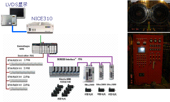 本系統(tǒng)由工業(yè)液晶顯示屏,無風扇設計嵌入式系統(tǒng)NICE 3100,控制器,工作站,驅動器,伺服器等組成。