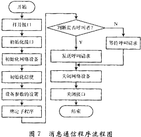用戶開發(fā)程序來實(shí)現(xiàn)消息通信,就是使用消息應(yīng)用層接口中的接口函數(shù)來調(diào)用信使的各項(xiàng)功能,實(shí)現(xiàn)消息通信的應(yīng)用程序就是按照這個(gè)順序編寫和執(zhí)行的。消息數(shù)據(jù)的實(shí)現(xiàn)程序的流程如圖7所示。