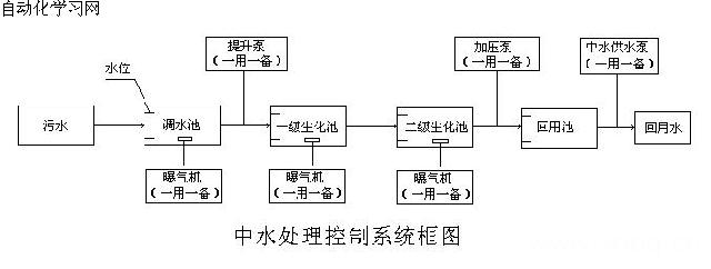 中水處理系統(tǒng)是將生活污水還原成中水的處理過程。應(yīng)用過的生活污水被集中在調(diào)水池中,由充氧機(jī)進(jìn)行充氧。充氧后的水由提升泵提至生化池,由充氧機(jī)進(jìn)行兩級(jí)生化。在處理過程中還要對(duì)生化過的水進(jìn)行加藥,消毒,攪拌等工序,使其能夠達(dá)到二次使用的可能。處理過的中水由加壓泵打到回用池中,由供水泵供給用戶在利用。(主要用為沖廁或綠化用水)