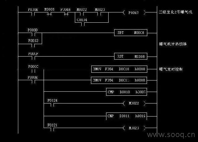 要求:當(dāng)運(yùn)行曝氣機(jī)出現(xiàn)熱保護(hù)時(shí)自動(dòng)轉(zhuǎn)換為備用機(jī)。