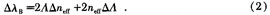因此,F(xiàn)BG可以被看作窄帶濾波器,濾波器的中心波長就是Bragg波長。當(dāng)FBG受到應(yīng)變、溫度等因素使FBG的柵距以或有效折射率neff產(chǎn)生變化時,被FBG反射的Bragg波長λB亦產(chǎn)生相應(yīng)變化。由式(1)的微分得知,其Bragg波長的偏移量為