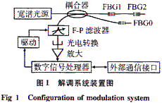 光纖Bragg光柵(FBG)傳感器是以FBG作為敏感元件的功能型光纖傳感器,有廣泛的應(yīng)用領(lǐng)域。當(dāng)該傳感器受溫度、應(yīng)變等外界參量的作用時,Bragg波長會發(fā)生相應(yīng)的漂移,因此,研究FBG傳感器的關(guān)鍵問題是如何精確測量FBG反射波長漂移量。傳統(tǒng)上一般應(yīng)用光譜儀解調(diào)系統(tǒng),它體積大、不易攜帶、不利于現(xiàn)場使用。近年來出現(xiàn)的微型光譜儀體積小、價格便宜,但其光譜分辨力只在0.1 nm數(shù)量級,遠遠達不到FBG解調(diào)需要的pm級的分辨力。