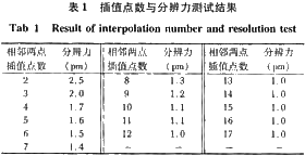 為了研究插值-相關(guān)譜法中,在一定的條件下,最好插入多少點波長分辨力最高的問題,在上面的實驗系統(tǒng)中,將每相鄰點之間的插值點數(shù)從2增加到17,得到如表1。