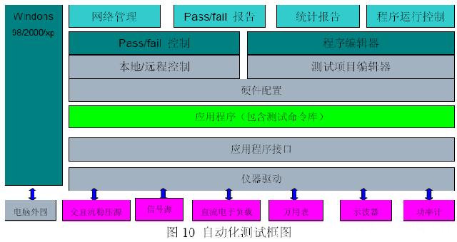 在開(kāi)關(guān)電源行業(yè)中,需要模擬開(kāi)關(guān)管開(kāi)關(guān)的頻率和同步頻率來(lái)進(jìn)行測(cè)量,在這類產(chǎn)品測(cè)試中,我們可以增加信號(hào)源來(lái)模擬開(kāi)關(guān)電源在不同狀態(tài)下的工作頻率。也可以使用信號(hào)發(fā)生器發(fā)出的信號(hào)來(lái)模擬原控制信號(hào)。在此,我們除了可以選擇上面提到的DG3121A,還可以選擇DG2000系列和DG1000系列的信號(hào)源。另外,我們可以把上面的儀器都集成到測(cè)試系統(tǒng)中去,把信號(hào)源、萬(wàn)用表、示波器、功率計(jì)等綁定在一起,通過(guò)軟件的控制可以來(lái)實(shí)現(xiàn)不同性能及其輸入輸出特性的測(cè)試,幫你實(shí)現(xiàn)生產(chǎn)線的自動(dòng)化測(cè)試,如圖10。