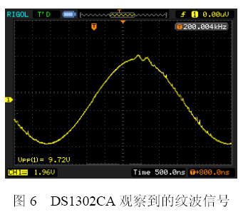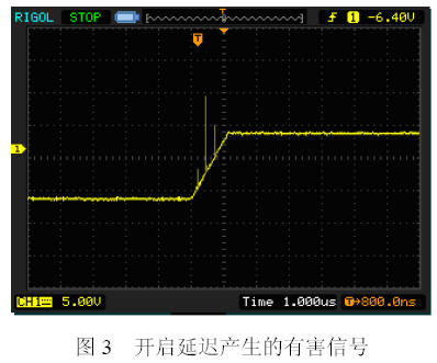電源的開(kāi)啟延遲是從施加交流輸入至輸出達(dá)到其調(diào)整范圍之內(nèi)的時(shí)間。如果開(kāi)關(guān)電源在開(kāi)啟時(shí),有有害波形產(chǎn)生,即有可能損壞開(kāi)關(guān)晶體管的電流尖峰。對(duì)于該有害波形,可以通過(guò)抑制電路等方法來(lái)消除。而通過(guò)用示波器的測(cè)量,我們就可以及時(shí)發(fā)現(xiàn)有害波形,并在電源開(kāi)啟的瞬間,有效地抑制有害信號(hào)的產(chǎn)生,間接提高后需電源的工作效率。圖3是DS1302CA捕獲的波形。